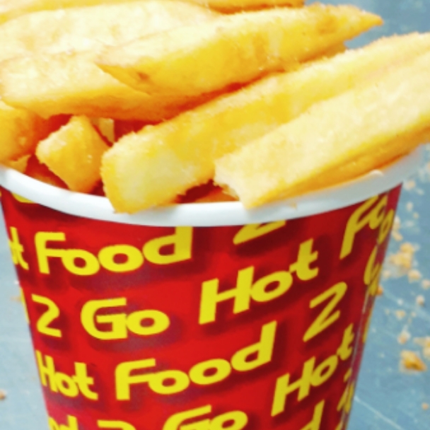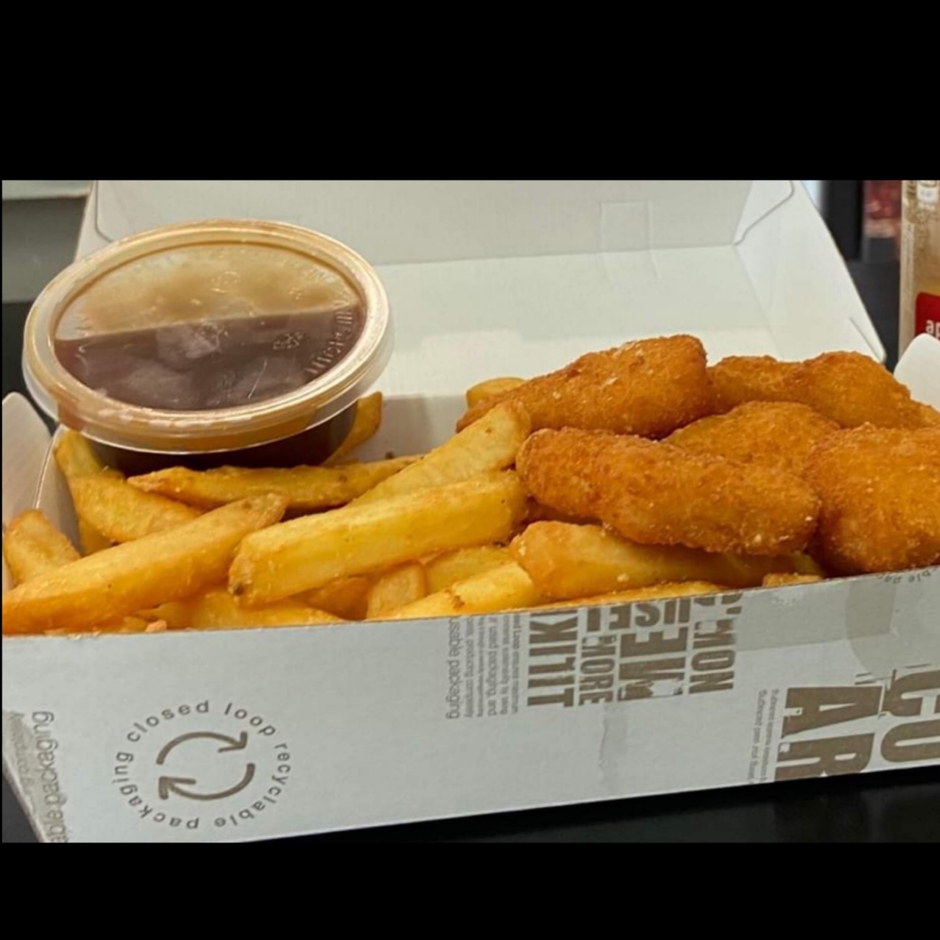 6 nuggets, seasoned chips and tomato sauce with a juice popper